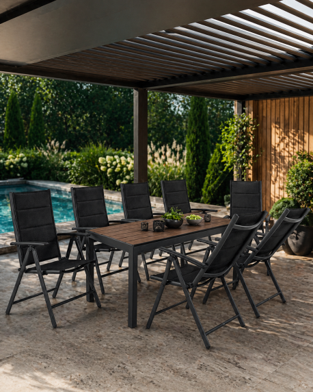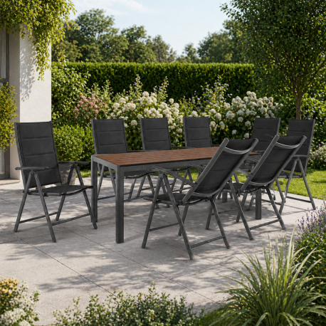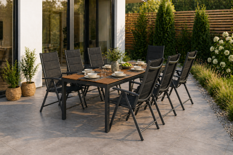 ZESTAW OGRODOWY MEBLE OGRODOWE POLA STÓŁ KRZESŁA ALUMINIUM 8 osobowy